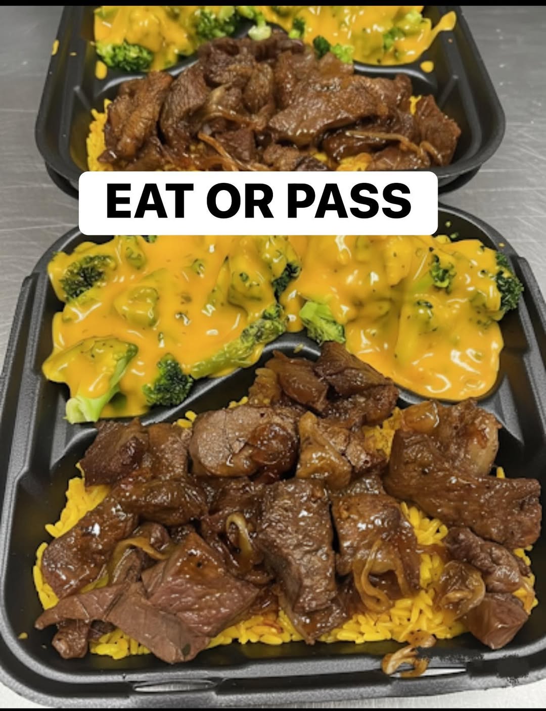 🥩 Glossy-Brown Beef Over Golden Rice with Cheddar Broccoli Sauce