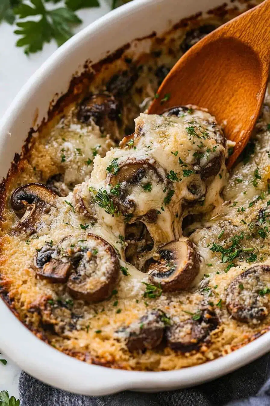 Decadent, over the top and utterly baked, this Baked Cheesy Mushroom Casserole is a beautiful combination of richly cheesy, tender mushroom filling. The buttery breadcrumbs that top it impart an exquisitely creamy, crispy texture; it’s a fabulous side to any main course but a lovely cozy comfort food in its own right. (And just drizzle with a few sprigs of fresh parsley to serve, for a sprinkle of color and flavor!)