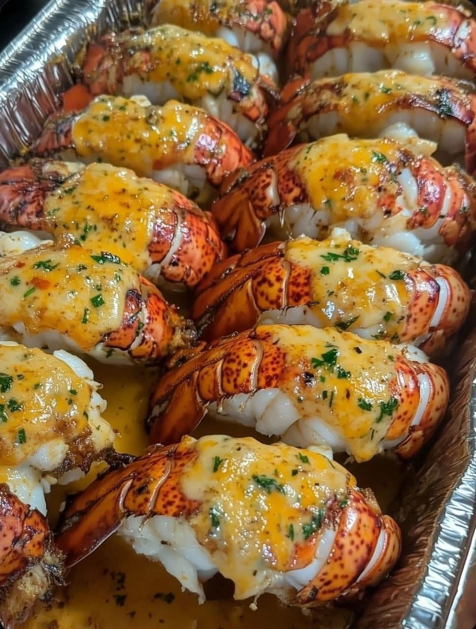 Broil the Lobster Tails: 8. Brush the garlic butter sauce generously over the exposed lobster meat.