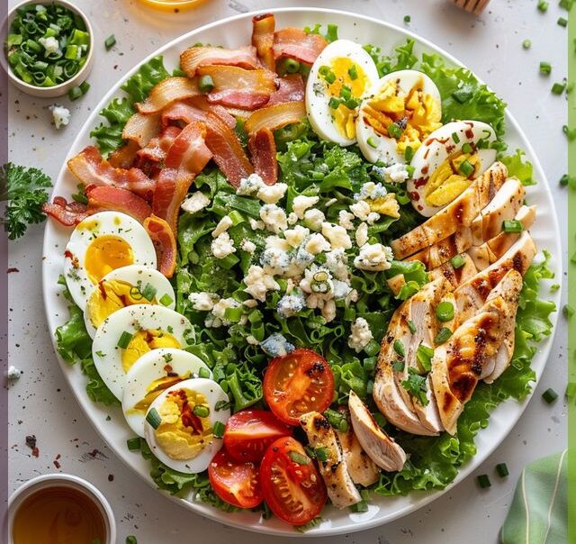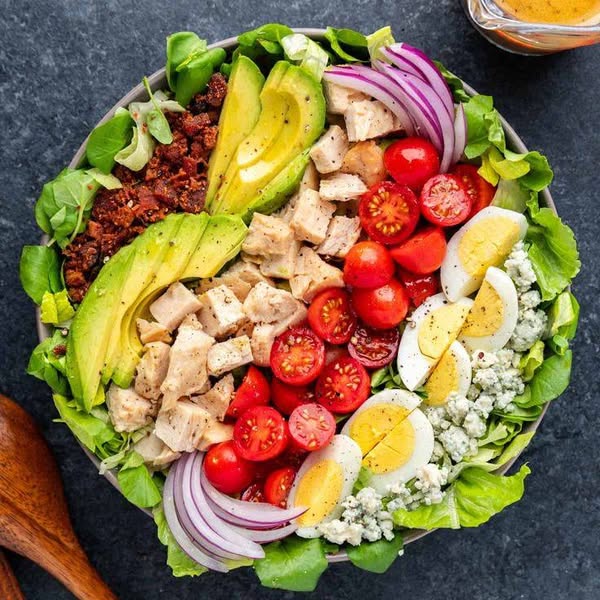 Cobb Salad Lettuce Grilled chicken Crispy bacon Avocado slices Cherry tomatoes Boiled eggs Red onion Blue cheese โ Toss with vinaigrette & enjoy! Fresh Cobb Bowl Romaine Chicken cubes Crumbled …