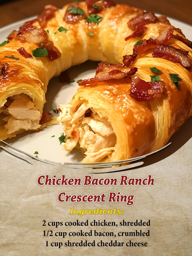 Ingredients 2 cups cooked chicken, shredded ยฝ cup cooked bacon, crumbled 1 cup shredded cheddar cheese ยฝ cup ranch dressing ยผ cup green onions, chopped (optional) 2 cans (8 oz …