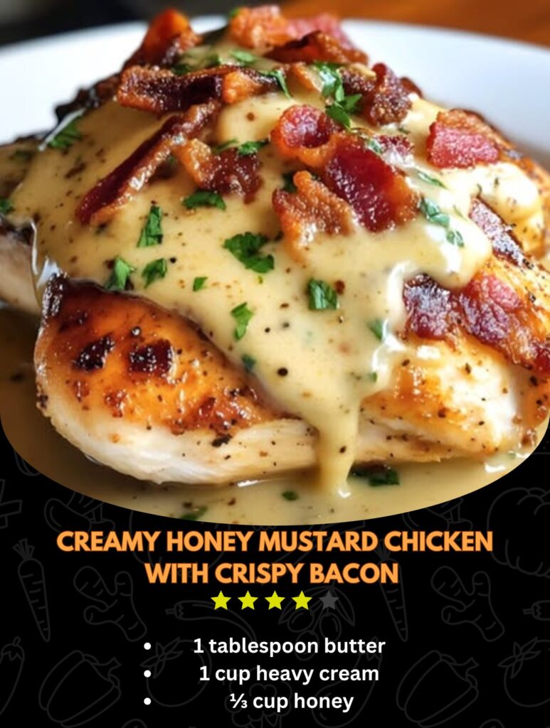 Ingredients 4 boneless, skinless chicken breasts 4 slices of bacon, cooked until crispy and crumbled 1 tablespoon olive oil 1 tablespoon butter 1 cup heavy cream ⅓ cup honey ⅓ …