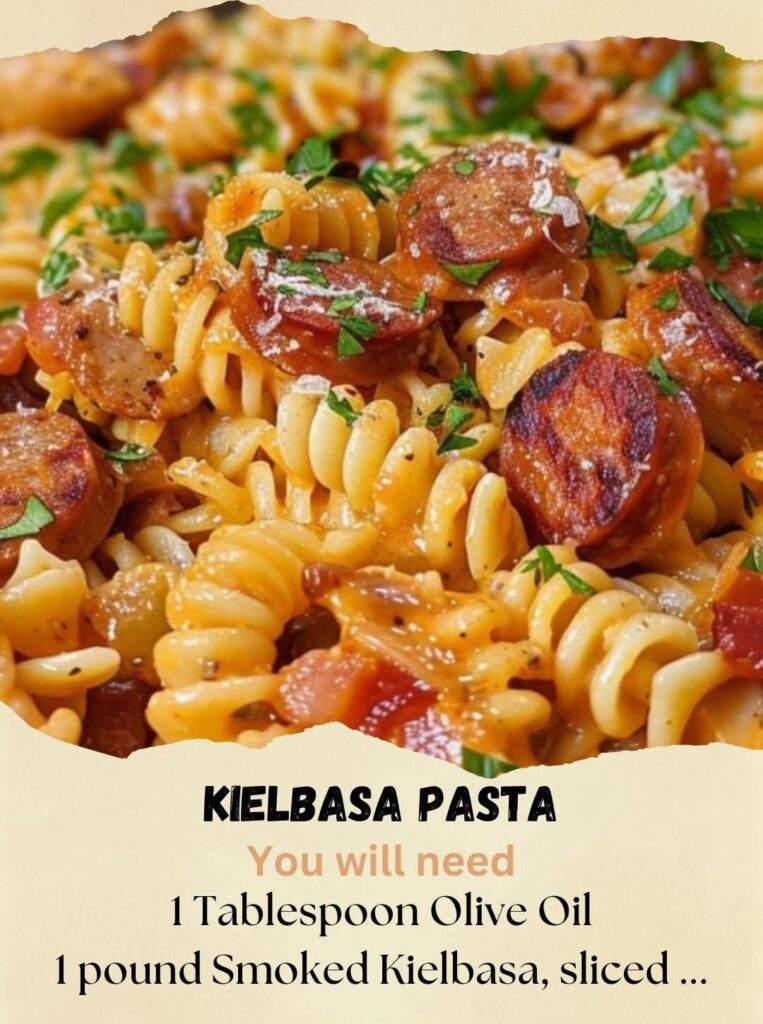Kielbasa Pasta Creamy Smoked Sausage and Pasta Skillet Ingredients: 1 Tablespoon Olive Oil 1 pound Smoked Kielbasa, sliced into ¼ inch slices 1/2 Yellow Onion, finely diced 2 teaspoons Minced …