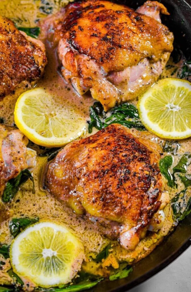 Creamy Lemon Butter Chicken Ingredients : 4 Bone in skin on chicken thighs 1 tsp. Salt 1 tsp. Lemon pepper seasoning 3 Tbsp. Butter divided 3 tsp. Minced garlic …