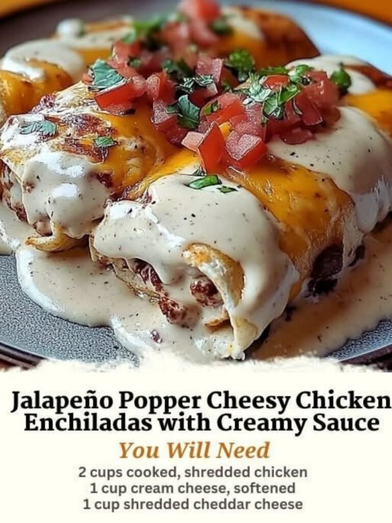 If you’re a fan of the bold, creamy, and slightly spicy flavors of jalapeño poppers but want to turn them into a comforting, cheesy enchilada dish, this recipe is for you! These Jalapeño Popper Cheesy Chicken Enchiladas combine tender shredded chicken, gooey cream cheese, smoky bacon, and spicy jalapeños in a buttery tortilla, all topped with a velvety ranch-inspired sauce and baked to perfection. Perfect for game days, family dinners, or any occasion that calls for indulgence!