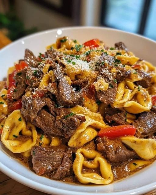 This Cheesesteak Tortellini is a delightful fusion of two comfort food favorites! Juicy steak, cheesy tortellini, and a rich, creamy Parmesan sauce come together for a dish that’s perfect for any occasion.