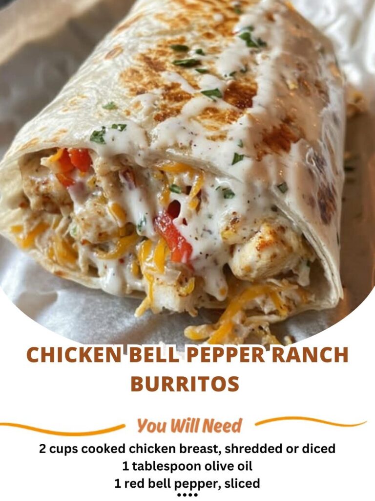 These Chicken Bell Pepper Ranch Burritos are a flavorful and satisfying meal, combining tender chicken, sautéed bell peppers and onions, creamy ranch dressing, and gooey melted cheese—all wrapped up in a soft tortilla. Perfect for lunch, dinner, or meal prep, these burritos are easy to customize and packed with deliciousness.