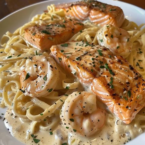 Few dishes manage to strike the perfect balance between indulgence and comfort like Creamy Salmon and Shrimp Alfredo . With its creamy sauce, tender seafood, and perfectly cooked pasta, this recipe is a celebration of flavors and textures. Whether you’re cooking for yourself or entertaining guests, this dish promises to impress.