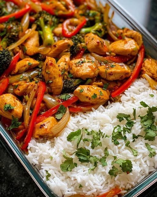 This vibrant stir-fry packs a punch with spicy garlic chicken and colorful veggies, served alongside fragrant cilantro rice. It’s a quick, flavorful meal perfect for busy weeknights that satisfies both the taste buds and nutritional needs.