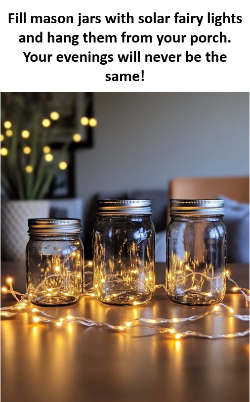 These Sunset Mason Jar Lanterns can be styled to complement a variety of outdoor aesthetics. For a rustic look, pair them with wooden furniture and burlap accents. If you prefer a more modern vibe, consider using sleek metal hooks to hang them and pair them with minimalist furniture. Add some potted plants or hanging vines to create a lush, inviting atmosphere. The soft glow of the fairy lights will beautifully highlight any greenery, making your porch a cozy and inviting space.