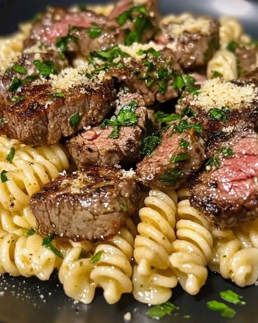 If you’re craving something savory, creamy, and satisfying, this Garlic Parmesan Rotini with Steak Bites is your perfect weeknight comfort dish. Tender seared steak meets a rich garlic-infused Parmesan cream sauce, all swirled into perfectly cooked rotini pasta. It’s indulgent yet easy enough to make in one pan, making it a delicious upgrade to your usual pasta night.