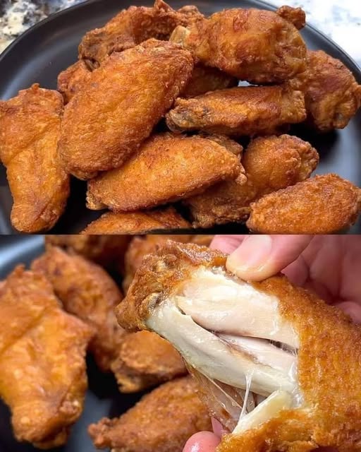 Dip each marinated wing into the batter, allowing excess to drip off, then carefully place into the hot oil. Fry in batches to avoid overcrowding. Cook for 8–10 minutes or until golden brown and crispy.