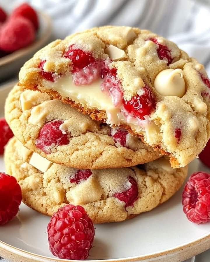 Gooey Raspberry White Chocolate Cookies 💖🍪