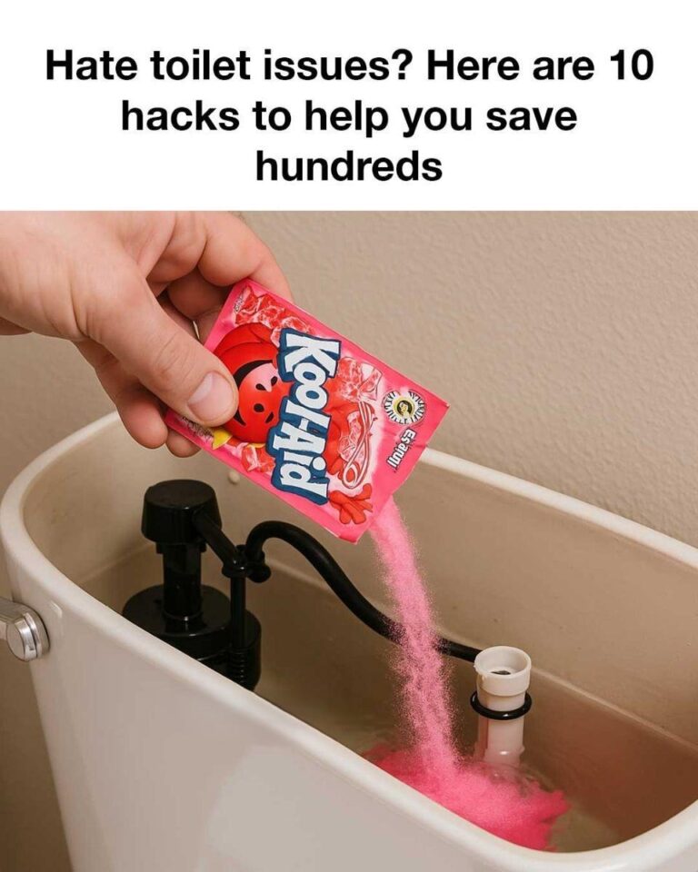 Pour a dark-colored Kool-Aid packet into the toilet tank. Wait 30 minutes without flushing. If color appears in the bowl, you have a leak. This quick method helps catch leaks before they inflate your water bill.