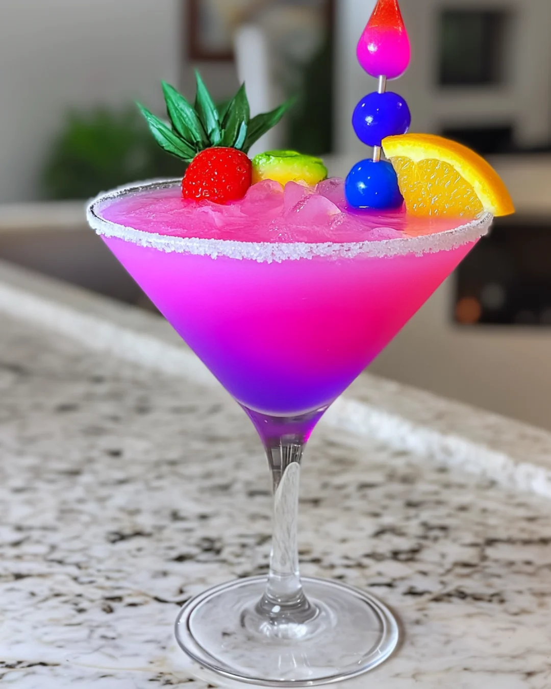 This Jamaican Me Crazy Cocktail is a bold, tropical beauty that brings beach party energy in every sip! With a stunning purple hue and a zesty mix of vodka, blue curaçao, and cranberry juice, this quick-shake cocktail is perfect for happy hour, girls’ night, or any time you’re feeling a little wild. Garnish with a sugar rim and a citrus twist or candy skewer for extra flair!