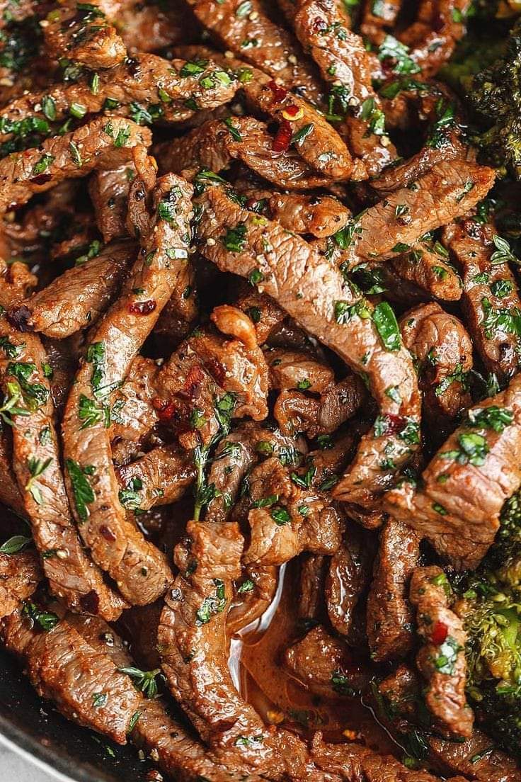 Lemon Garlic Butter Steak and Broccoli Skillet:❤️❤️