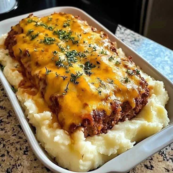Meatloaf with Mashed Potatoes and Cheese is a comforting, hearty dish that combines a classic meatloaf with creamy mashed potatoes and melted cheese. This all-in-one meal is perfect for a cozy family dinner, offering a delicious combination of flavors and textures that everyone will love. It’s easy to make and sure to become a family favorite!