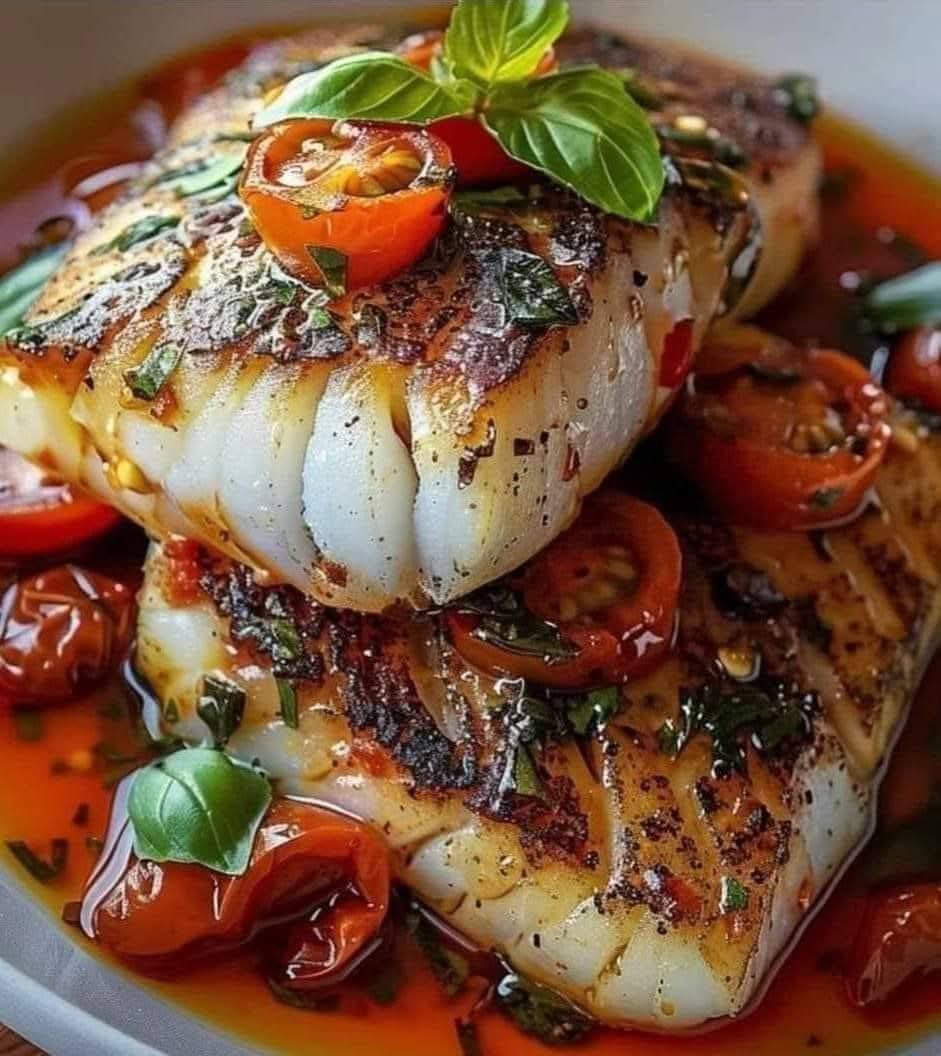 Pan-Seared Mediterranean Cod in Tomato Basil Sauce Recipe 🍽️🍅🐟
