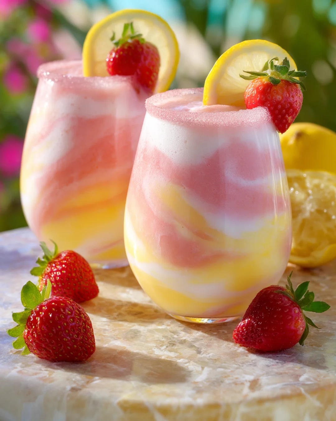 Pink Lemon Paradise – Swirled Cocktail Recipe with Strawberry and Lemon Layers