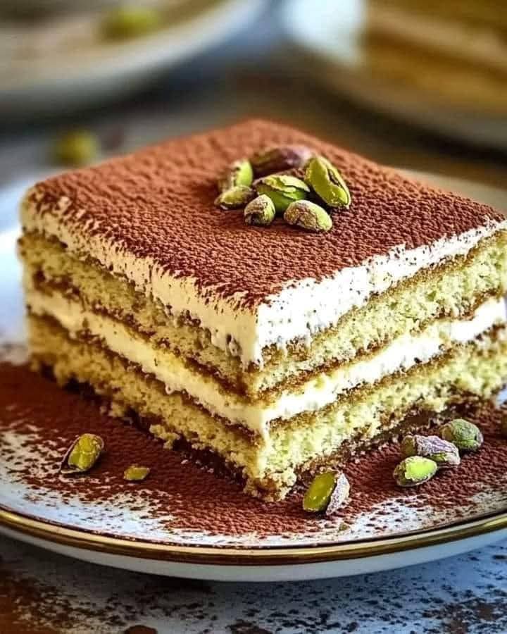 Indulge in this unique take on the classic tiramisu, featuring layers of fluffy pistachio sponge cake, creamy mascarpone filling, and a hint of coffee. This decadent dessert is perfect for special occasions or whenever you’re craving a sweet treat with a twist!