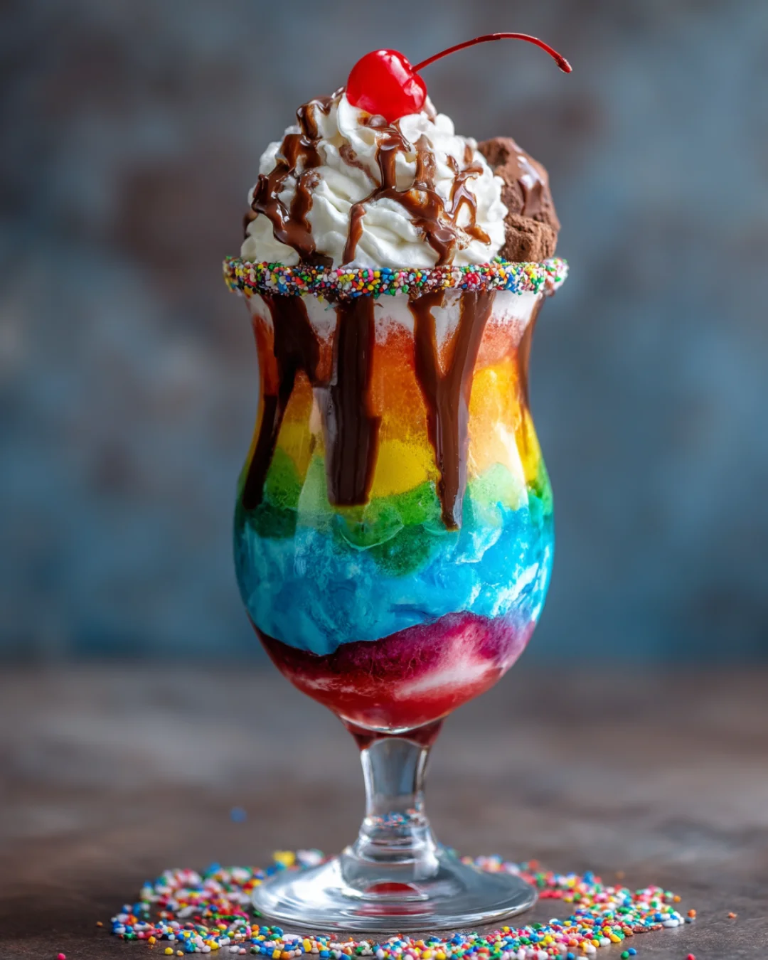 This Rainbow Mudslide Cocktail is a colorful, layered party drink that blends fruity flavors with creamy, chocolaty indulgence. It’s a total showstopper—perfect for birthdays, Pride parties, or when you just need a fun twist on a classic mudslide! With layers of vibrant liqueurs and a whipped cream-chocolate finish, this dessert cocktail is as fun to make as it is to drink. Make it today and turn your glass into a rainbow celebration!