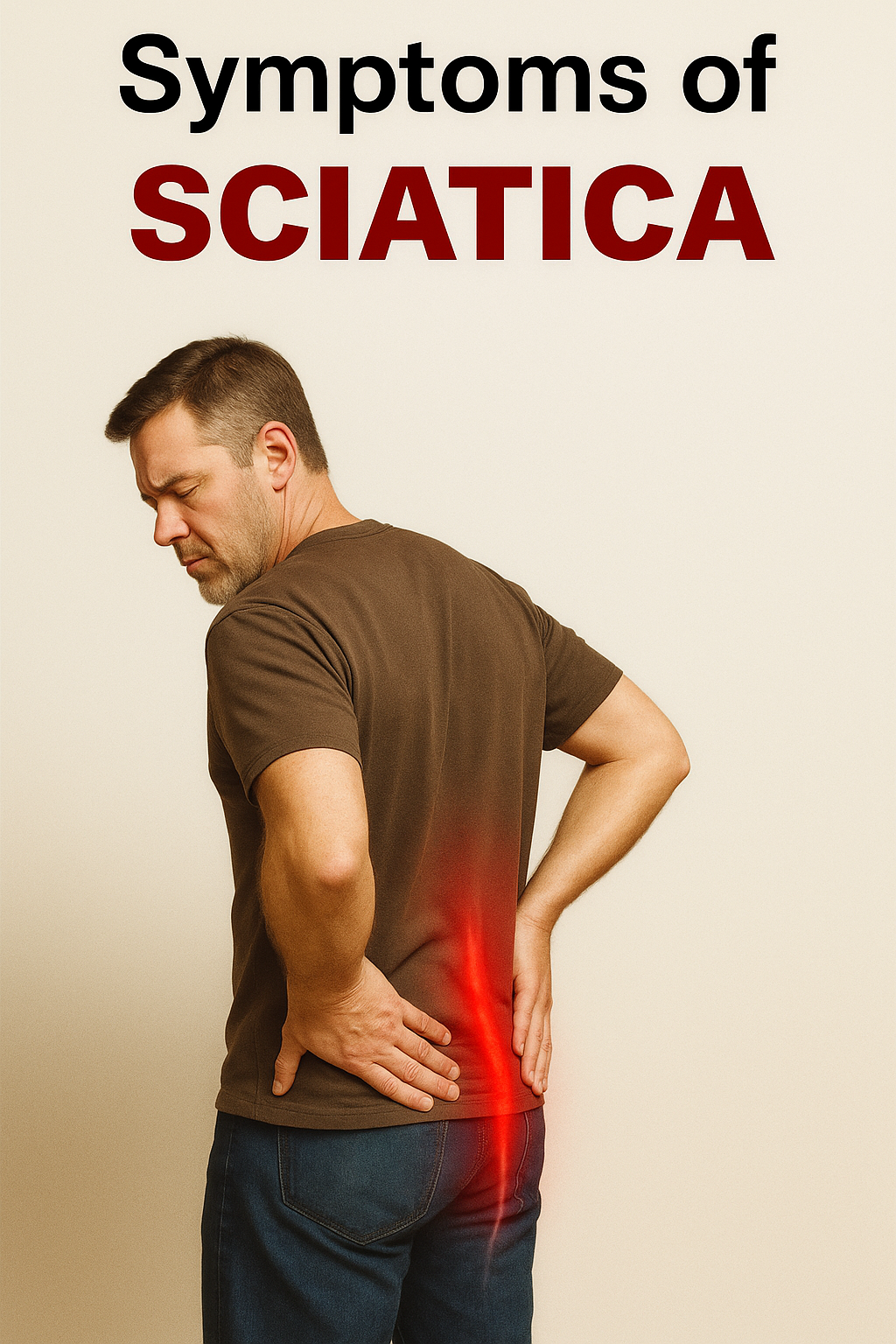 - Sciatica, which causes sharp, shooting pain from the lower back down to the leg.