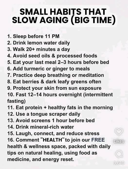 Here are some powerful yet simple daily habits that can significantly slow down aging and boost your vitality 🌟: