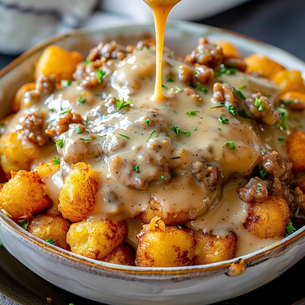 Tater Tot Breakfast Bowl with Sausage Gravy