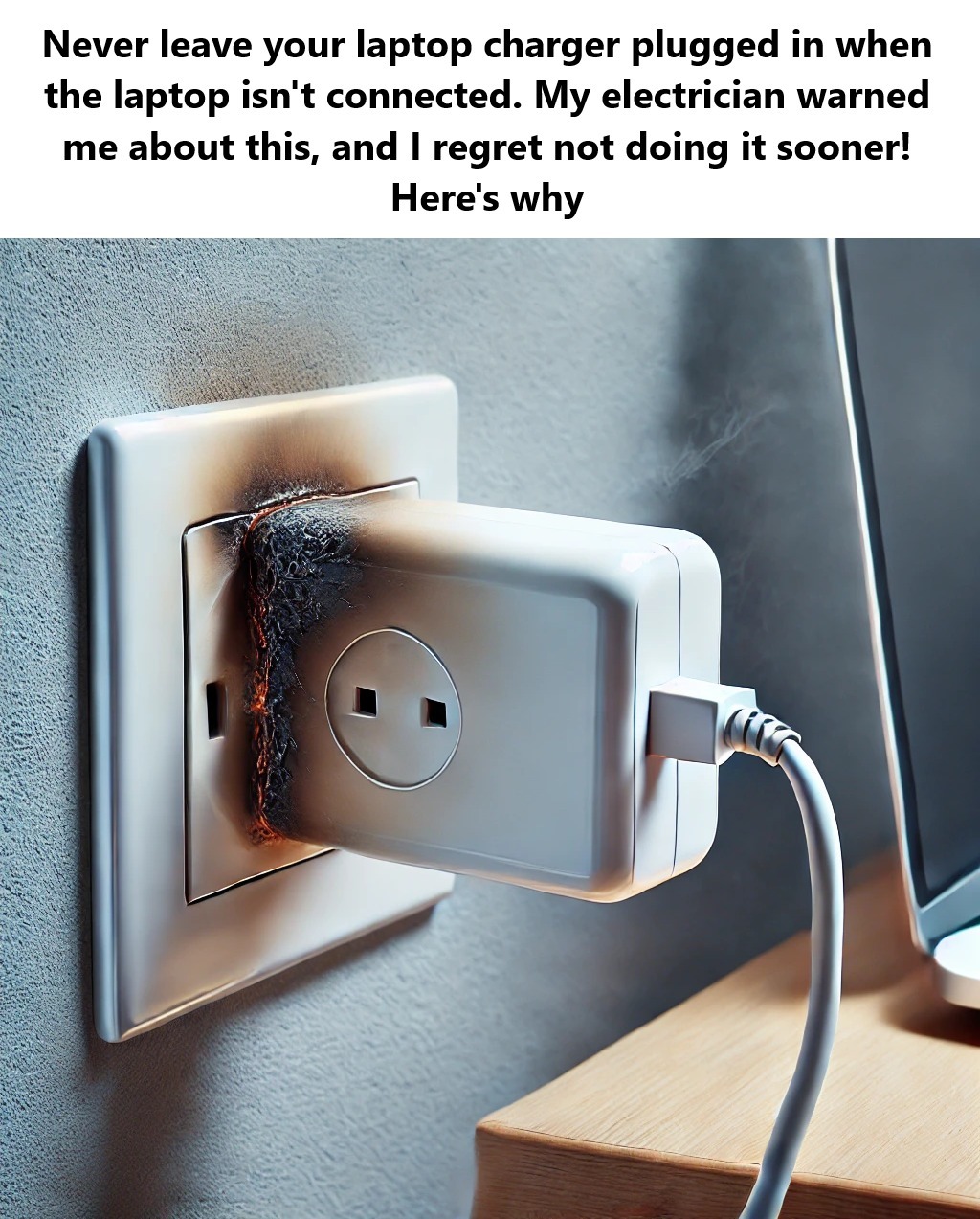 During a routine electrical inspection, my electrician pointed out the potential dangers of leaving chargers plugged in. He explained that even when a laptop is not connected, the charger continues to draw a small amount of power, known as ‘vampire energy.’ This not only wastes electricity but also increases wear and tear on the charger itself, potentially leading to premature failure. His professional insight was a wake-up call, highlighting the importance of unplugging chargers to prevent unnecessary risks.