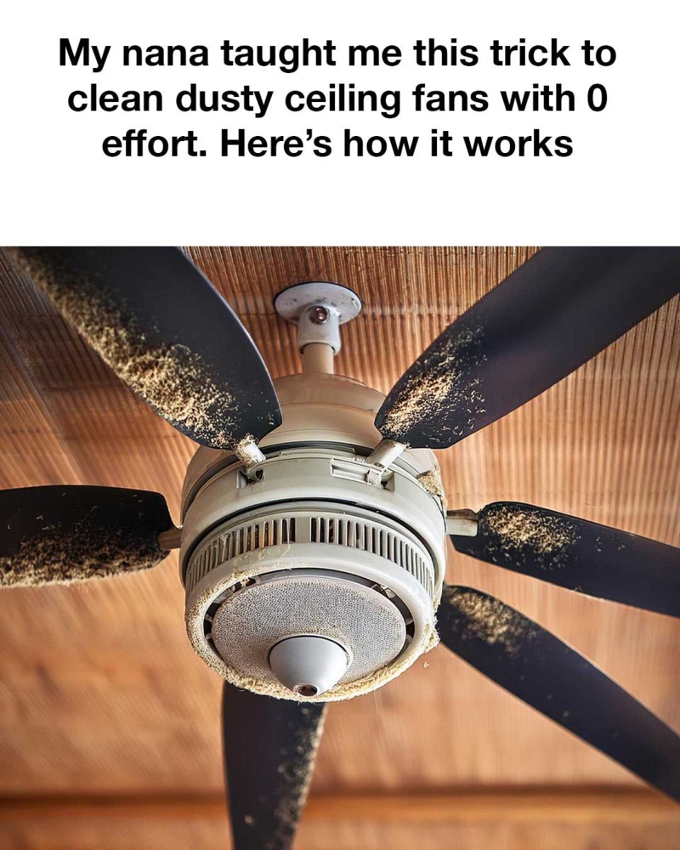 Most people try to clean their ceiling fans by using a duster or a cloth, often leading to dust falling onto furniture, floors, or even themselves. This method usually requires standing on a ladder or chair, which can be precarious. Additionally, dusting without any protection tends to scatter dust everywhere, making the cleanup more tedious than it needs to be. This is where Nana’s trick comes in handy.