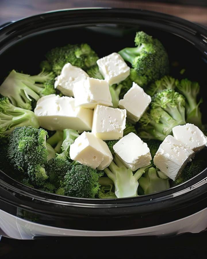 Toss broccoli and cream cheese in the slow cooker for a hearty, no-fuss mea